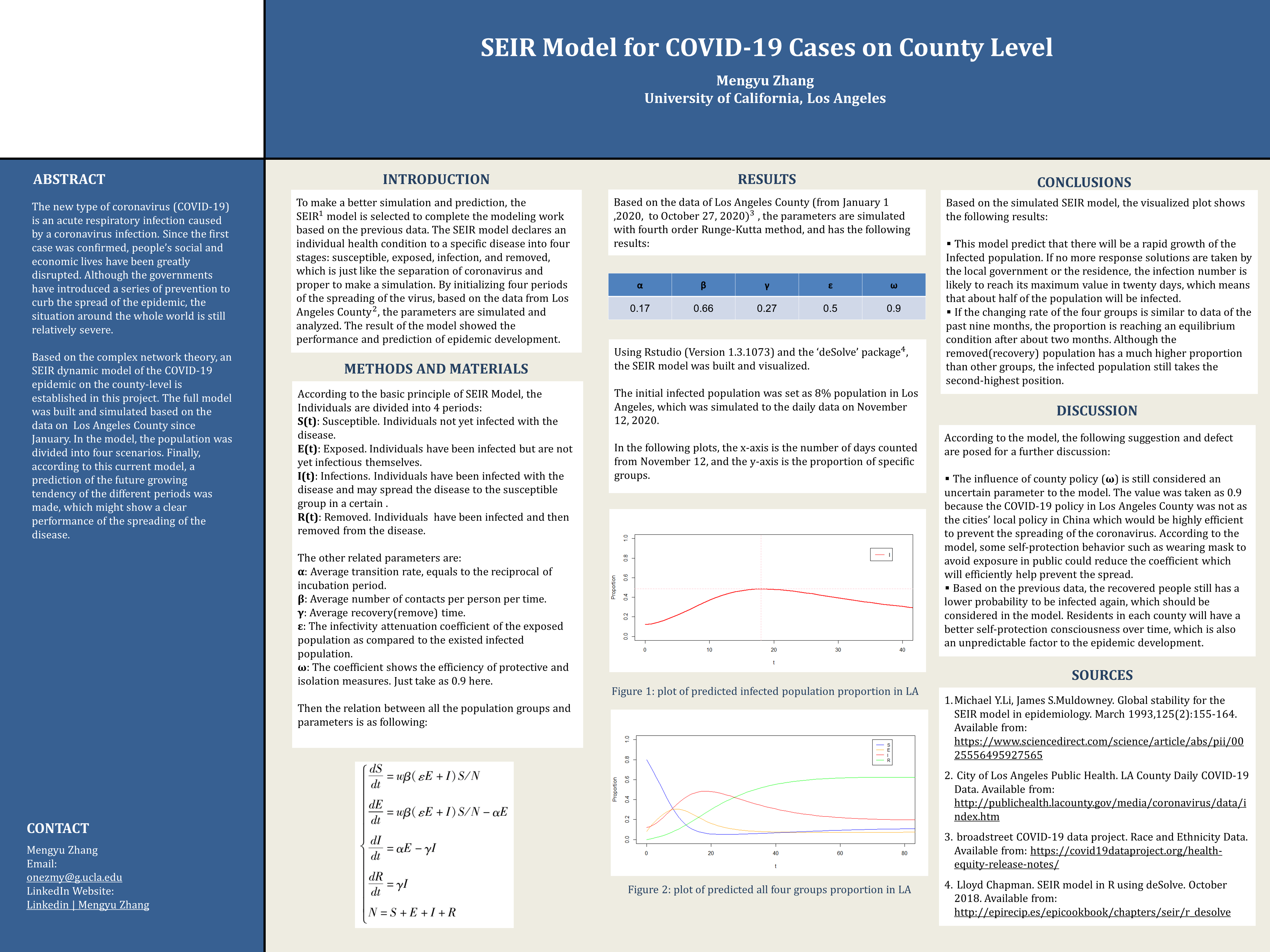 Based on the complex network theory, an SEIR dynamic model of the COVID-19 epidemic on the county-level is established in this project. The full model was built and simulated based on the data on Los Angeles County since January. In the model, the population was divided into four scenarios. Finally, according to this current model, a prediction of the future growing tendency of the different periods was made, which might show a clear performance of the spreading of the disease.